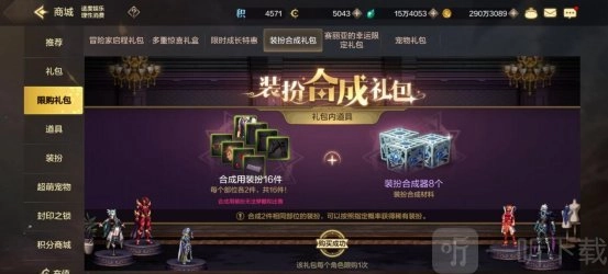 1、第一步,购买商城限购的装扮合成礼包。只需花费1500点券,就能得到16件合成专用装扮(每个部位各两件),以及8个装扮合成器。利用这些合成器,每个部位都能合成一次,每次合成出稀有装扮的概率是20% 。