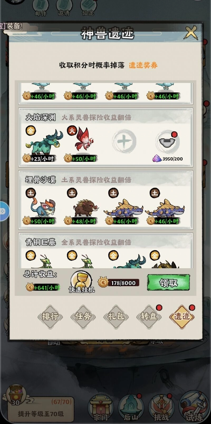 1. 完成仙缘任务,此任务为抓捕一只灵兽,可通过刷绿鸟来完成。具体做法是,先将一只绿鸟吞噬,之后再进行抓捕。抓捕结束后,别忘了前往遗迹,重新在空出来的那个位置挂机。