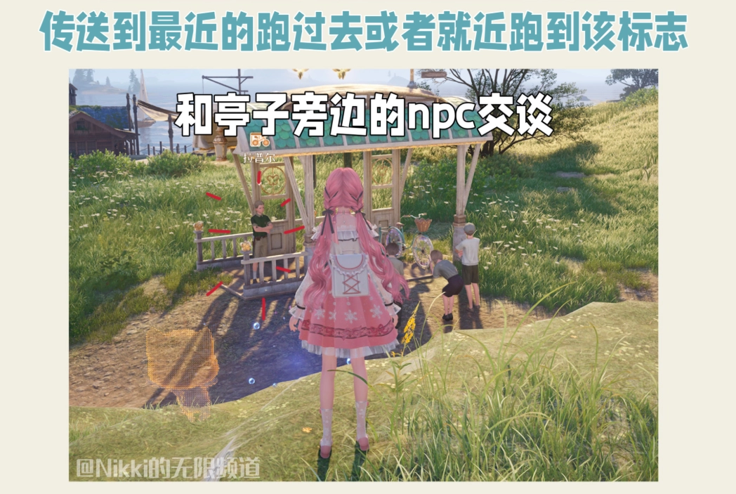 传送到距离最近的地点,然后跑向那个标志;或者直接就近跑到该标志处。