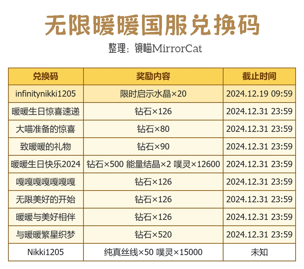 暖暖,2024年生日快乐呀!这里有一份生日福利送给你:钻石*500、能量结晶*2、噗灵*12600 ,领取截止时间为2024年12月31日23:59 。