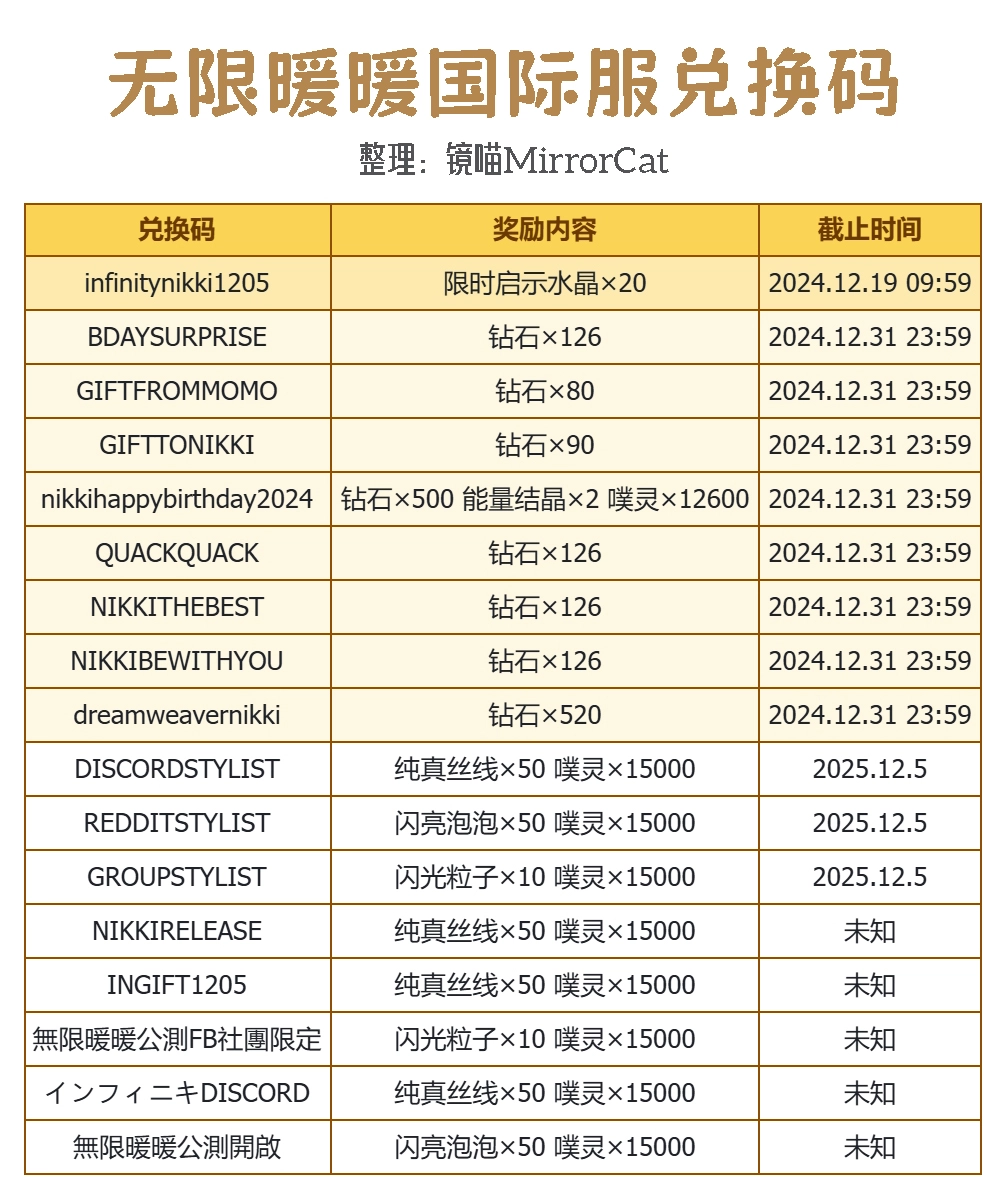 三、其他未钻取的:DISCORDSTYLIST、REDDITSTYLIST、GROUPSTYLIST、NIKKIRELEASE、INGIFT1205、无限暖暖公测FB社团限定、インフィニキDISCORD、无限暖暖公测开启