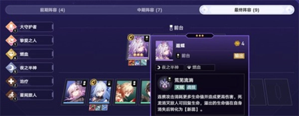 主C选用遐蝶,借助燃血与夜之半神的双重羁绊,来达成爆发输出与资源收益的效果。