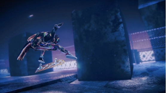 《滑板故事》的视听呈现是其核心魅力所在。游戏世界遍布着经过巧妙构思、蕴含隐喻的场景细节。在玩家的冒险途中,由纽约神秘艺术家Blood Cultures创作、并融入John Fio曲目的配乐,以其幽暗且迷幻的电子音境,精准渲染出游戏深邃而充满张力的氛围。