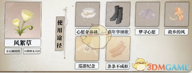 可制作道具:能够制作心愿金蔷薇、嘉年华颂歌、梦寻心愿、故乡的风、巡游纪念、条条不成框