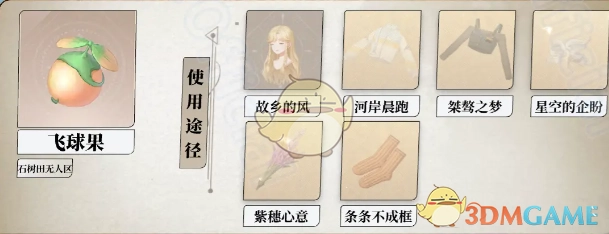 可制作道具:能够制作故乡的风、河岸晨跑、桀骜之梦、星空的企盼、紫穗心意、条条不成框
