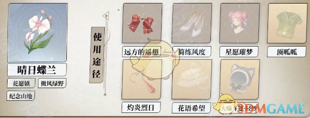 可制作道具:能够制作心愿金蔷薇、嘉年华颂歌、梦寻心愿、窥渊、风愿绮花、大喵斗篷·煦风