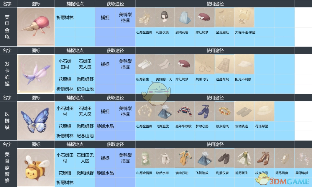 在《无限暖暖》游戏里,昆虫是非常关键的一类收集材料。制作某些道具时,昆虫是必不可少的。而且不同种类的昆虫,分布位置各有差异。通常获取昆虫的方式是捕捉,或者在澎湃浪花处寻找。为了让大家更便捷地捕捉昆虫,下面小编整理了《无限暖暖》全昆虫捕捉位置介绍,感兴趣的小伙伴不妨一起来看看。