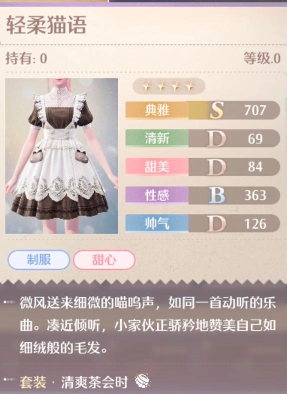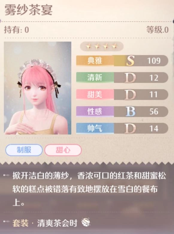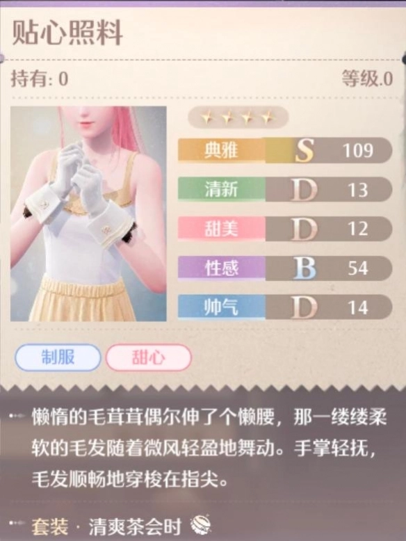 《无限暖暖》12 月 5 日开服后,清爽茶会时是常驻池中的四星动物清洁套装。该套装包含制服、甜心词条,主属性为典雅。那清爽茶会时的外观究竟怎样,有什么加成效果,各个部件又是什么样子呢?接下来,让我们一同了解。