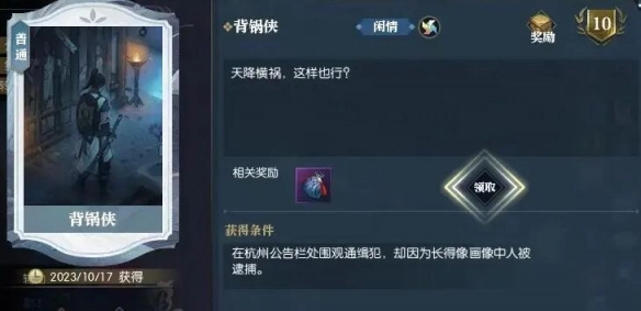 3、稍等片刻,即可直接触发卡片【背锅侠】,进而获得称号奖励。