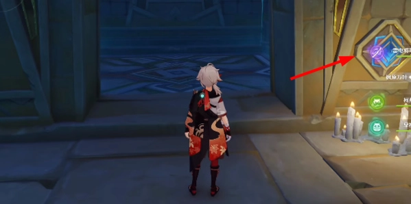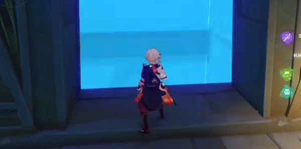 2、首先,我们触发右侧的升降机机关,随后便会出现一层蓝色的屏障。