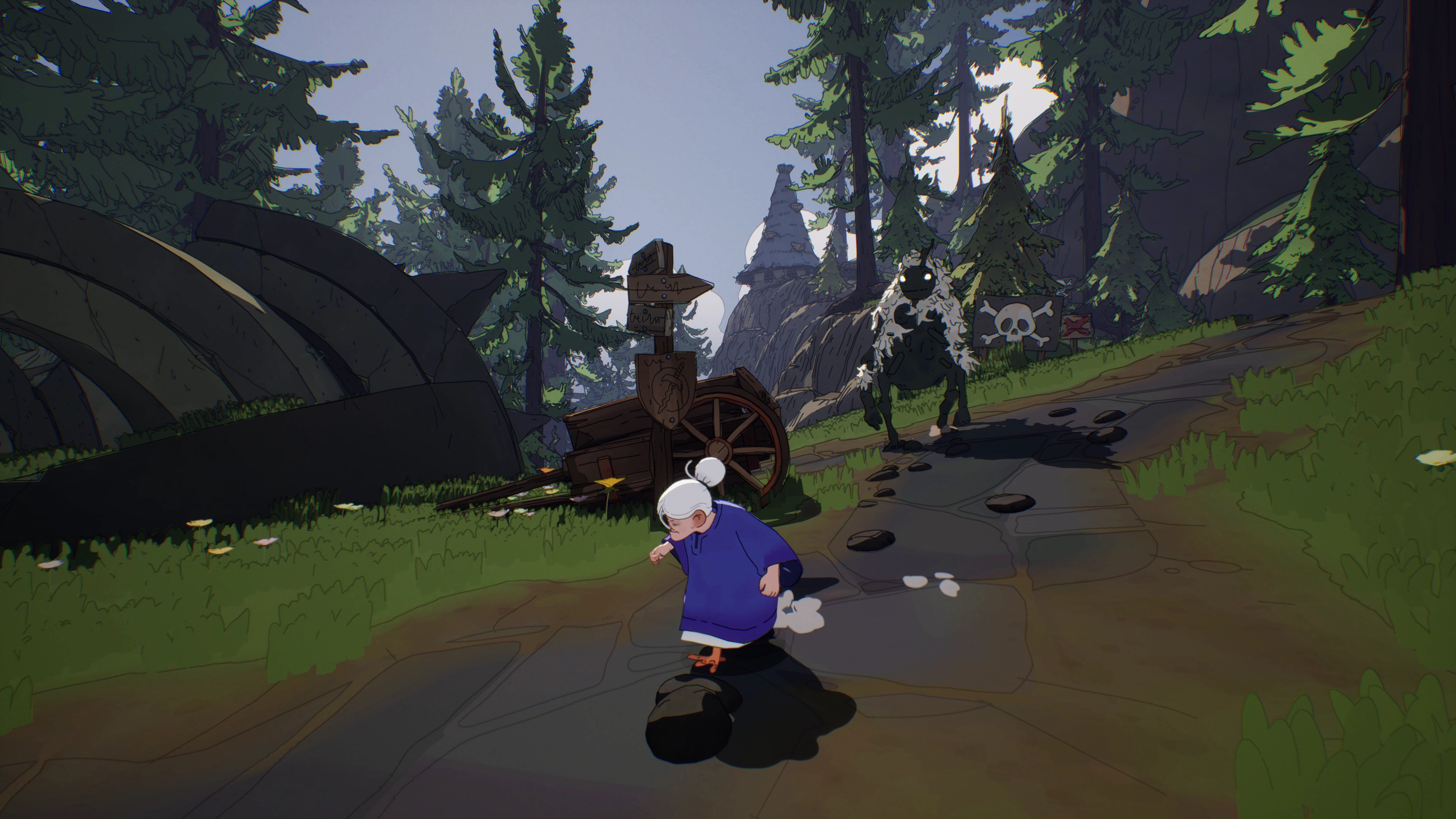 斯特拉利把这款游戏定义为“角色互动解谜平台游戏”。它属于开放式(并非开放世界)的冒险游戏类型,玩家能在特定的生态区域里自由探索,并且要和一个具备观察、学习能力,还会对玩家行为做出响应的生物合作来解开谜题。故事的主人公格蒂(Gertie)是一位上了年纪的女巫,她的行动模式和传统游戏里的英雄有着很大差异——这样的设定,来自斯特拉利对传统英雄旅程进行解构的思考。
