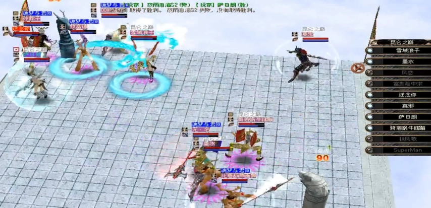 除了一对一的车轮战,十对十的门派团战也极具趣味。双方阵营各有一根图腾柱,必须守护好己方图腾柱,一旦图腾柱血量降至一滴,就算作战失败,所以哪怕团队最后只剩一人,也不能只靠走位拖时间,让团战的策略性和紧张感直接拉满。现在想来,这可能就是最早期的“夺旗模式”。