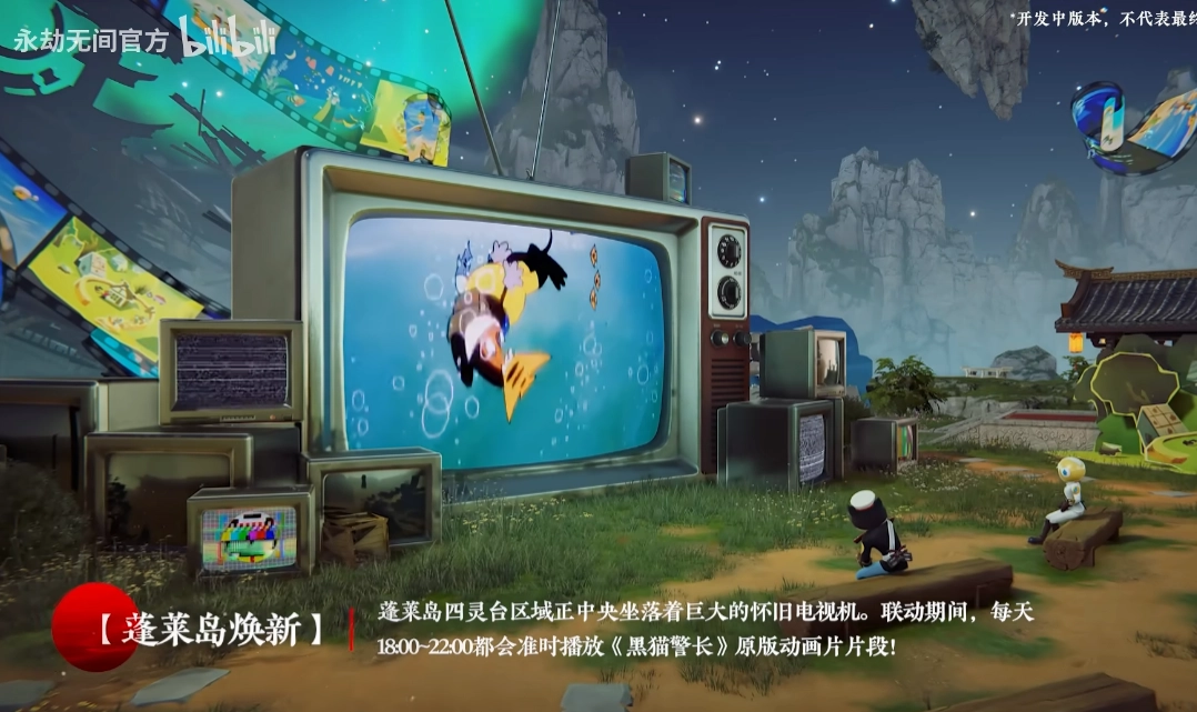 蓬莱岛焕然一新,四座灵台中央安放着一台超大的怀旧电视机,这次让我们一同前往蓬莱岛观看《黑猫警长》!同时,局内限时玩法也将同步上线,快来协助警长捉拿一只耳吧!