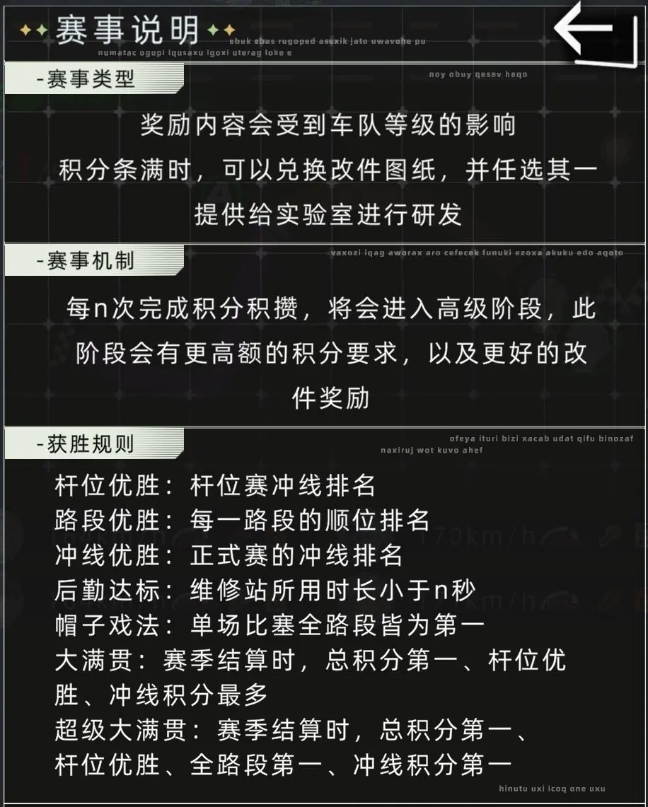 赛事中天气是关键因素,其他可依赖数值。比赛途中天气会变化,雨天务必切换防滑模式。还可预约赛事,防止遗忘错过,预约后每年年初会弹出提示。