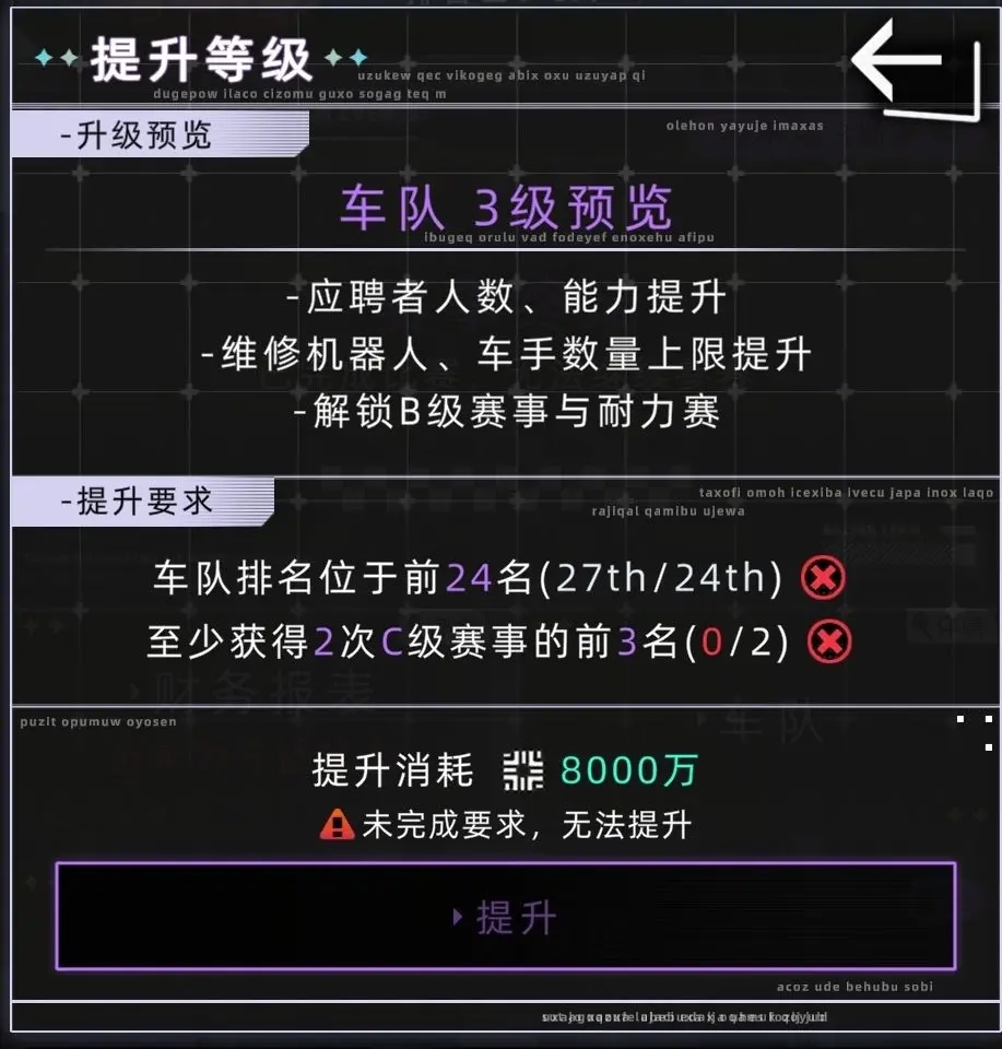 目前已知永生角色瑶无法加入车队,新推出的男车手NPC也同样被车队拒之门外,因此车队需要长期培养新的车手和技术总监。