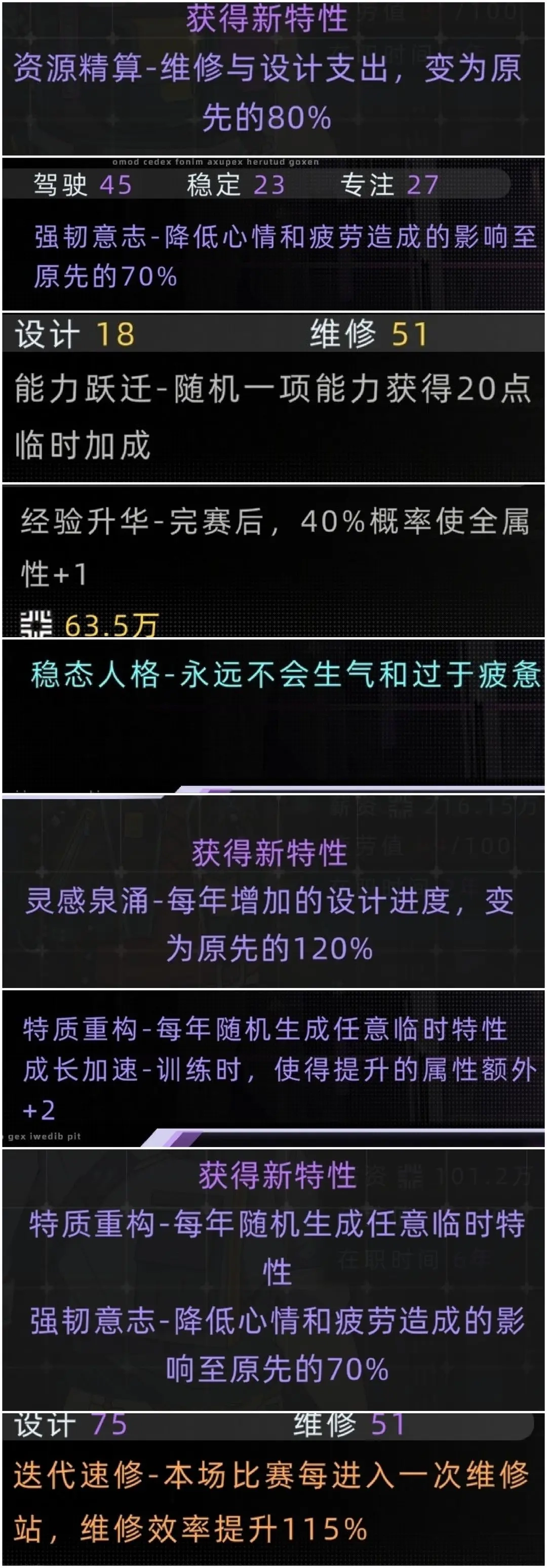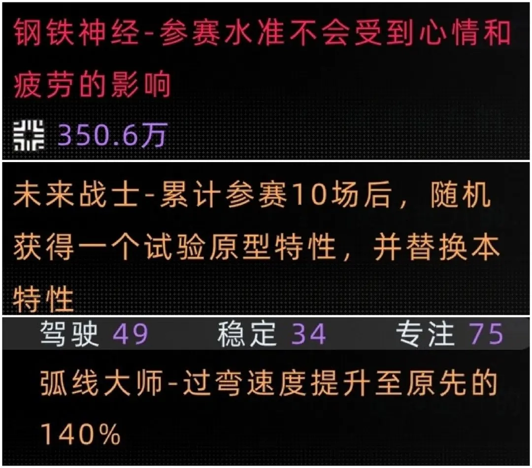 车手与技术总监之间存在部分通用天赋,成长加速天赋是非常值得推荐的。