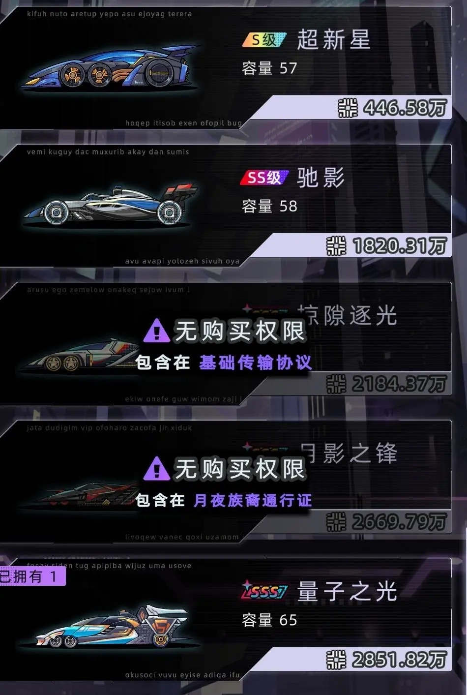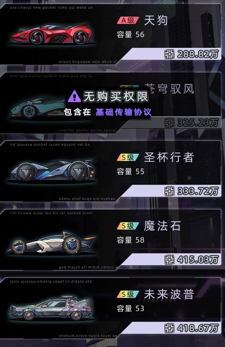 赛车的性能与容量是很关键的因素,游戏里存在一定的逼氪现象。驰影这款原装车的最高时速为576,容量是58,而月影之风的最高时速能达到700,并且NPC可以使用月影之风,两者之间的差距十分明显。要是开启代理人模式,使用性能较差的车辆,大概率会出现亏本的情况。