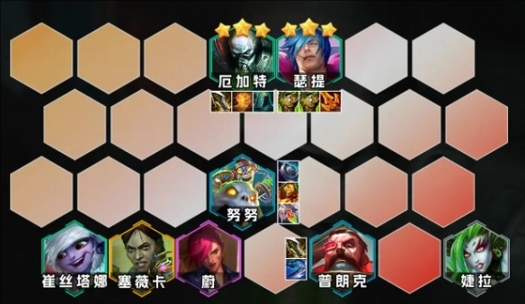 前期在卡两费的时候,螃蟹和腕豪这两张牌,尽量都升到3星。要是螃蟹先升到3星,也可以选择上本,之后再慢慢用金币搜腕豪升3星。