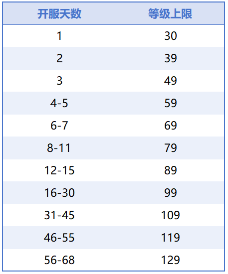 最后,为各位玩家介绍【一代天骄】的服务器等级上限限制,各位可以根据此限制安排自己的“梦幻成长计划”哦: