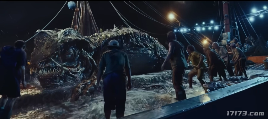 第二支呈现渔民捕获的巨型海洋生物腹部骤然裂开,一个人从其中钻出来的超现实场景。
