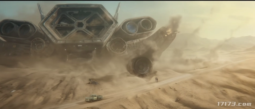 第三支呈现的是荒漠里那艘庞大的失事飞船,还有两个从飞船里走出来的宇航员,却被路过的人视若无睹的荒诞画面。