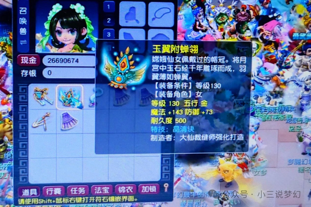 上面这件是130级带晶清诀特技的女头,晶清诀在任务和PK玩法里都是必备特技,所以高等级带晶清诀的装备价值普遍不低,更何况这件装备还是在畅玩服务器鉴定出来的。小编想问问各位玩家,畅玩服务器里第一件130级晶清女头能值多少?要是用现实里的物品来换,这件130级女头又能换到些什么呢?