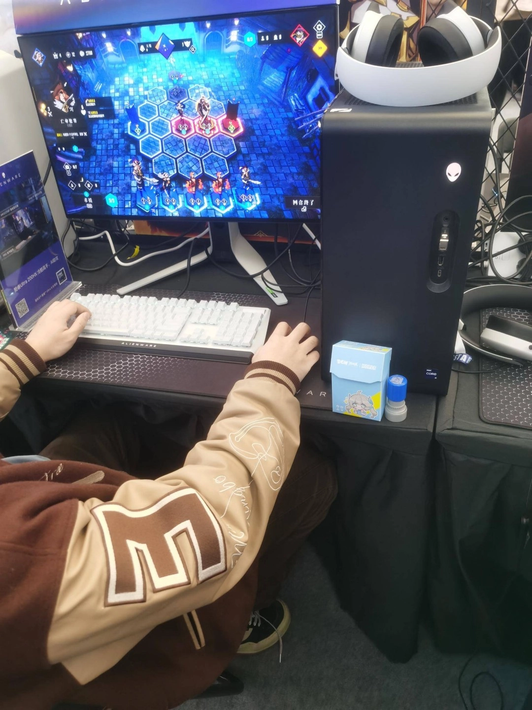展台在前一天晚上就已经布置妥当,我们的迷你展台其实很简单,不过是一张桌子、一台主机、一块屏幕,再加上一套键鼠罢了。
