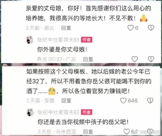 不过张纪中也并非完全无人关注,例如他发布视频庆祝女儿一岁生日时,就有不少网友在评论区留言“求娶”,对此张纪中直接公开怒怼:“你外婆是你丈母娘。”