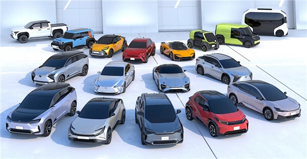就拿老大哥丰田来说,2021年就公布了个“全面电动战略”,这里面目前落地了几台大家自己品吧。
