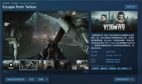 《逃离塔科夫》是俄罗斯Battlestate公司打造的全新军事题材网络游戏,它在传统FPS玩法的基础上融入了RPG元素,有着丰富的可玩性。在游戏里,玩家需要选择加入两股军事势力中的一方,对神秘城市塔科夫展开探索与调查,最终找到离开这片区域的方法。