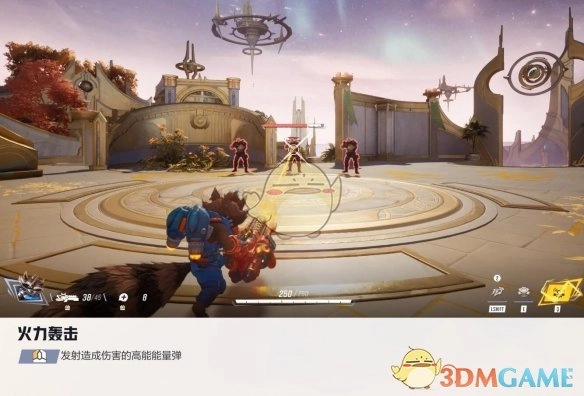 左键操作:火力轰击,此操作会发射能够造成伤害的高能能量弹。