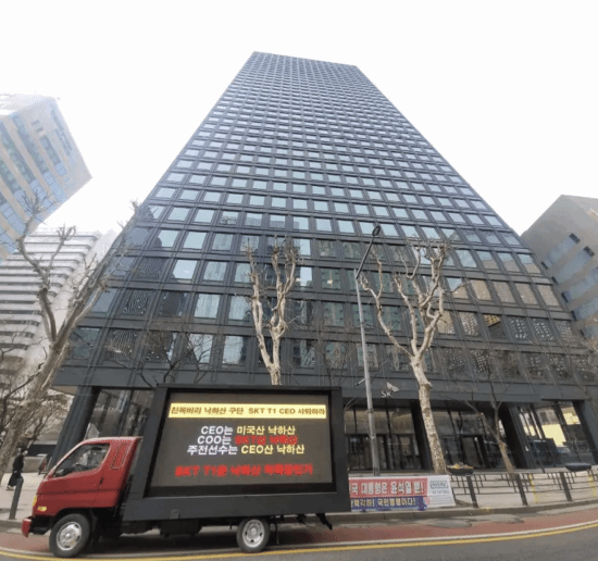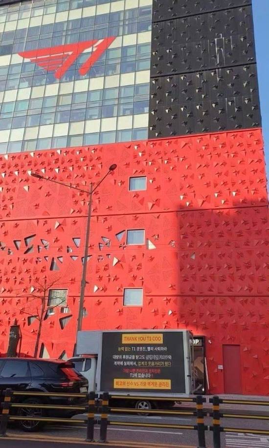 值得一提的是,用“开卡车”的方式来表达抗议,算得上是T1战队的“传统操作”了,T1甚至还被大家戏称为“卡车队”。就在今年3月,由于粉丝们对T1的赵麻石(Joe)各种不公平的干预行为感到不满,他们直接把卡车开到了T1战队总部的门口,通过滚动屏幕循环播放要求Joe下台的内容,与此同时还公开发表了相关声明。