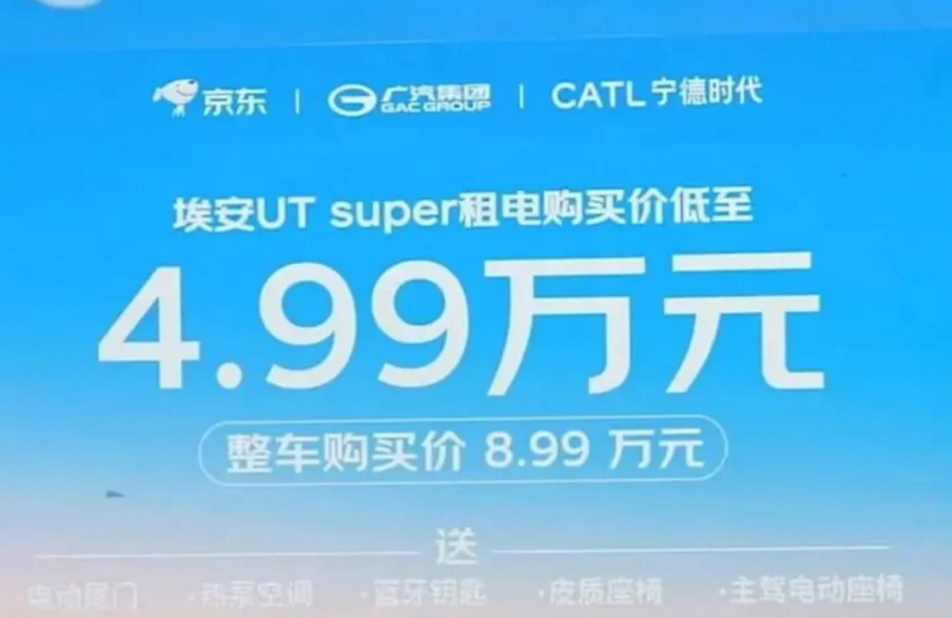 11月初中旬,京东与埃安UT Super合作推出的新车正式亮相,起售价仅4.99万元!这波操作直接把价格战拉满了吧?要知道,像比亚迪海豚、吉利星愿这类同级车型,起步价都得七八万……结果京东这边直接给到4.99万,而且还是5座布局,这真的能盈利吗?
