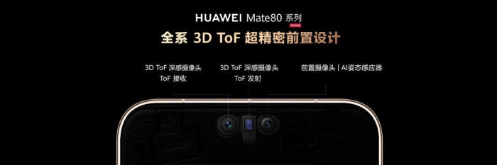 华为Mate 80系列全系为3D ToF超精密前置设计。