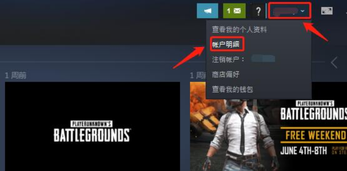 打开 Steam 客户端,点击界面右上角的账户名称,接着在弹出的下拉菜单里找到并选择 “账户明细” 选项。
