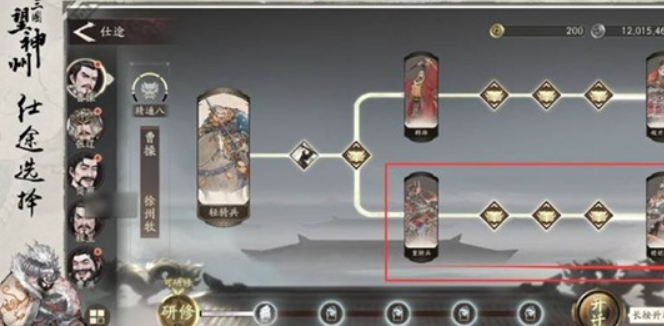 在仕途路线的选择上,每条路线都能提供曹操的角色碎片用于升阶,但兵种路线一定要选择下路的精锐骑兵和重骑兵,这条路线能让曹操拥有六格移动力,大幅提升机动性,灵活的走位可以更好地覆盖队友,提高辅助效率。