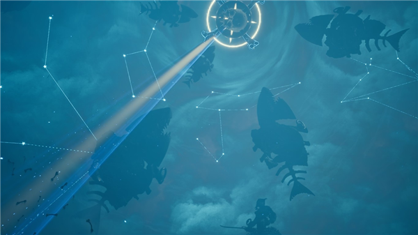 游戏的舞台并非传统的海洋世界,而是由九座漂浮岛屿构成的超现实冥界。这里的天空是凝固的暗紫色,岛屿上既有悬于半空的腐烂海盗船残骸,也有从岩石中钻出的发光珊瑚丛,偶尔还会有巨大的鲸鱼骨架缓缓掠过,每一处场景都弥漫着暗黑童话般的诡异美感,精妙地诠释出一种“令人不安却又迷人”的矛盾美学风格。