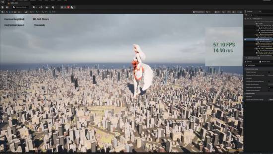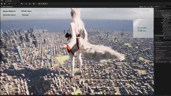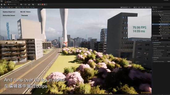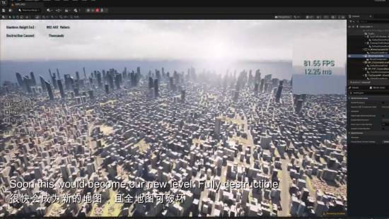 “超震撼的25×25公里程序化生成城市,细节拉满,而且在编辑器里能稳定跑60+FPS!!!破坏系统马上就要上线了。我太爱UE5了!!!”