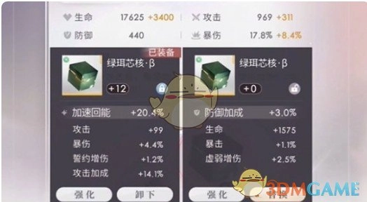2、月卡和日卡左边的芯核,其主属性固定,无需查看,直接从副属性数值看起。