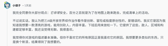 有网友表示,楼主不应觉得3A游戏的续作必然会有大幅创新。楼主所反感的那些熟悉玩法,恰恰是该网友喜爱这款游戏的缘由——正因为玩法相近,才让他明确自己偏好这类游戏。