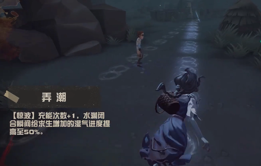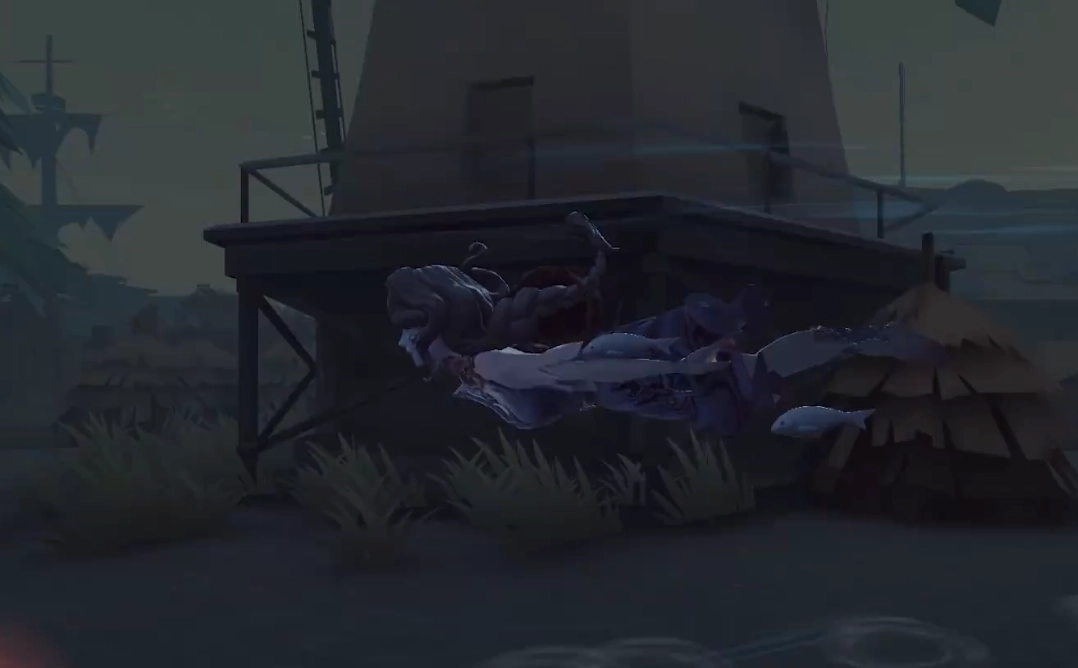 格蕾丝投掷手中的鱼叉后,会进入“洄游”形态。在此形态下,她的移动速度会大幅提升,不过无法执行交互动作和发起攻击;但借助自身特质,能迅速把求生者包围起来。尽管“洄游”形态不能直接攻击,却依旧可以释放技能“惊波”——该技能会让求生者产生50%的湿气效果,此外,技能“弄潮”也会对求生者造成湿气影响。