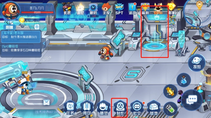 3、玩家需先返回赛尔号主页面,找到右上角的“基地”入口,或者点击屏幕底部的基地按钮通过自动寻路进入。进入基地管理界面后,点击左下角的“装修”按钮,接着在“设施”分类下的基础设施里找到“载具仓”,就能在此处制作雪橇车了。