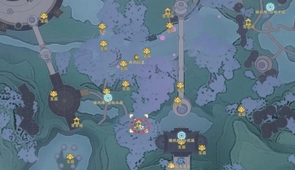 位置四:在【合欢 - 合欢派】往左下方走,树下的位置。