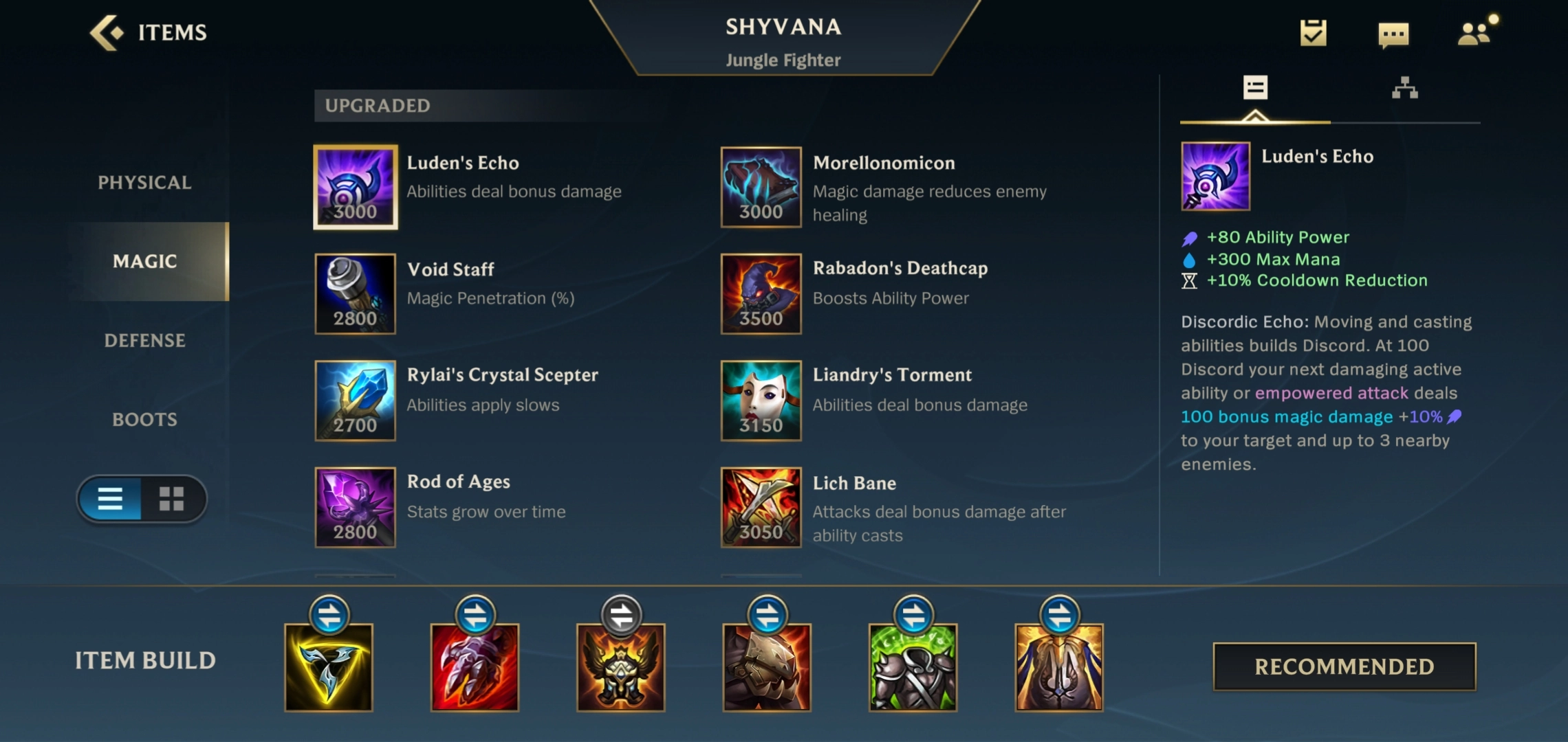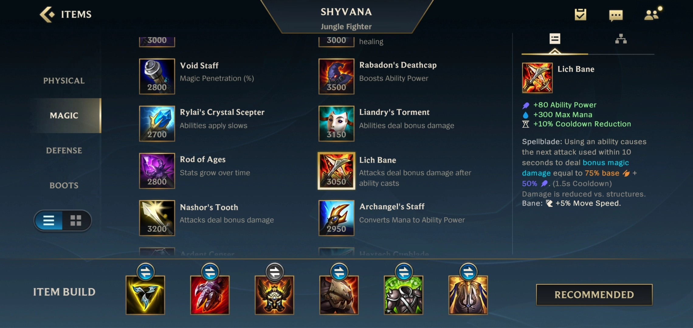 最后三件装备的选择思路是这样的:先出鬼书和法穿棒,靠这两件装备来提升法穿属性与法术强度,以此强化后期的输出能力;至于最后一件,则是把鞋子升级为金身。