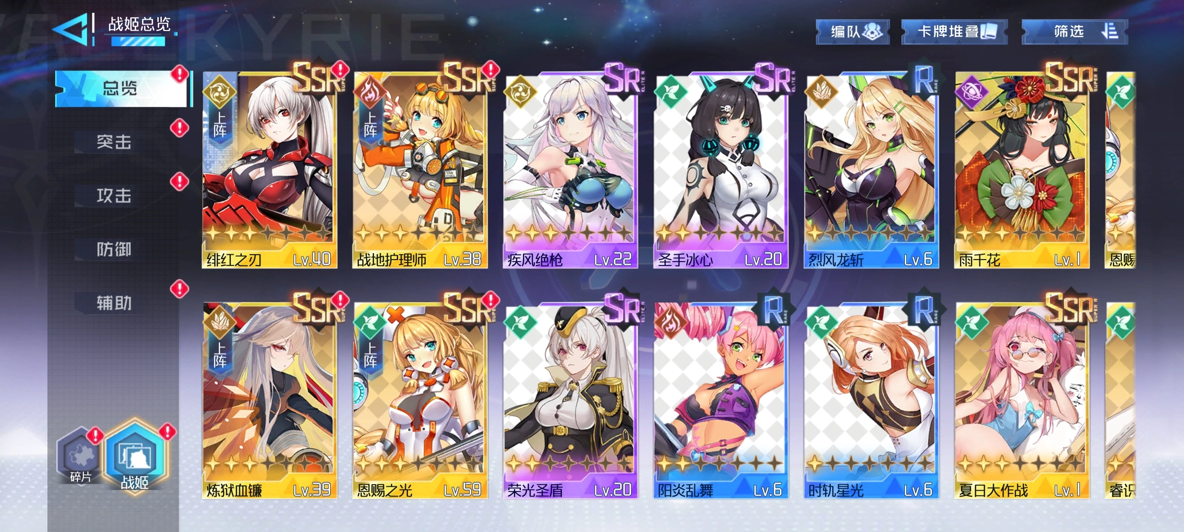 角色资质分为R、SR、SSR三个等级,对应的颜色分别是蓝色、紫色和金色。