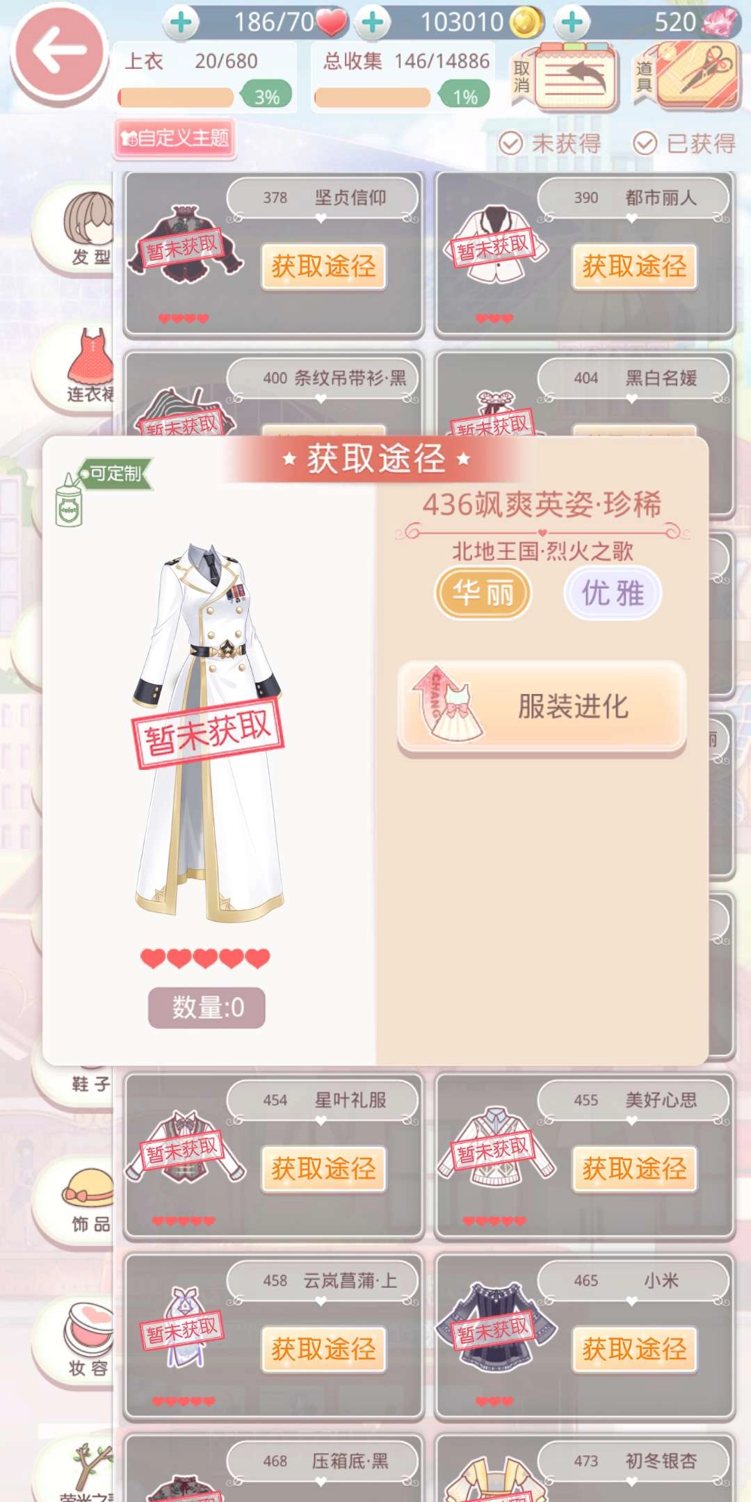 外套是小编认为最难制作的部件之一。华丽&优雅风格的飒爽英姿·珍稀需通过飒爽英姿·华丽进化得到,而飒爽英姿·华丽由飒爽英姿进化而来,飒爽英姿则需要玩家通关卷112-1后获取。