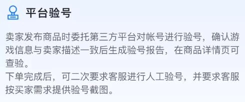 3. 官方机构验号,保障账号安全。交易猫平台上所有待售账号,均会预先通过专业机构的严格验证,验证合格后将出具验号报告。有了这一保障措施,买家能更安心地购买,有效避免各类问题的发生。