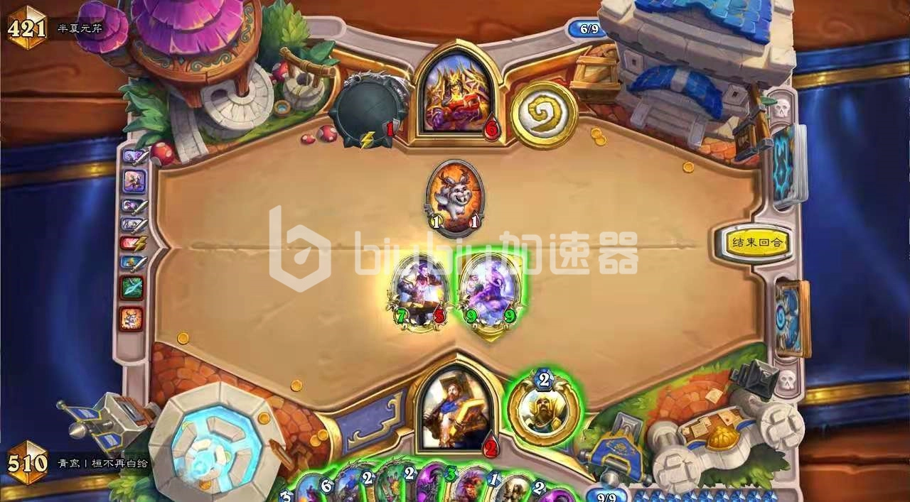 游园离梦的任务线完成起来十分轻松,搭配张加攻牌就能简单搞定任务。前两个任务线能为玩家提供11点护甲,还能抽一张牌,这福利相当不错。最后会给玩家一个5费8/8的嘲讽随从,同时增加8点攻击和8点护甲,此时就可以直接攻击对手的英雄了。