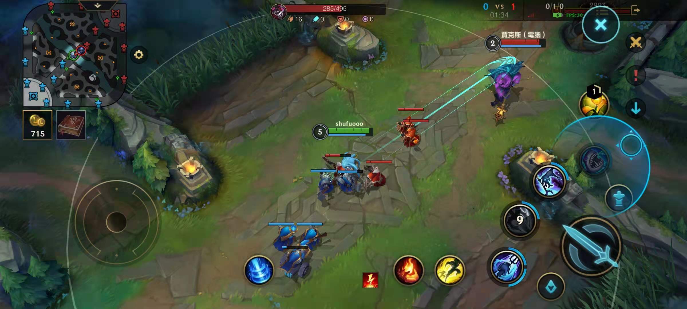 之后蛮王可以选择出饮血剑,来增强自身的持续作战能力,再出复活甲提高自己的失误容错空间,拥有两次复活机会的蛮王,直接追着对手砍就没问题了。当然玩家也能根据实际战况,给蛮王补上重伤装备或者破甲装备。