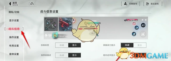 答:你可以在设置页面中寻找到战斗信息,然后选择装备战力显示功能,根据自身需求自由设定开启或者关闭该功能就可以了。